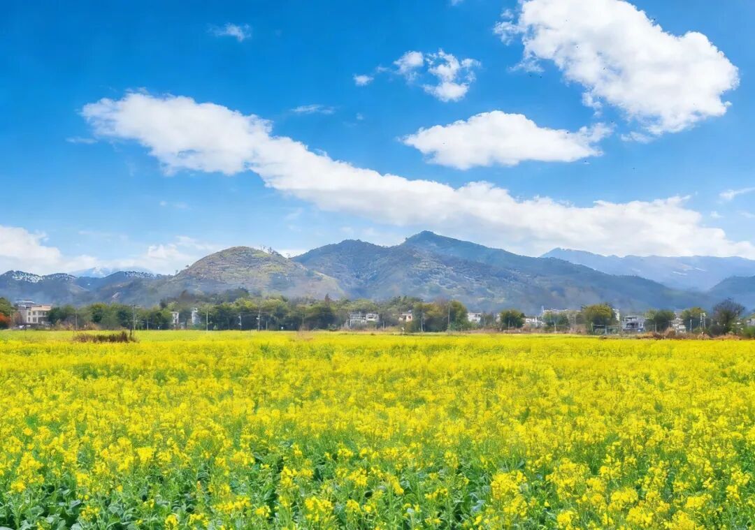 在青绿的田野山间映衬下,仿佛让人置身于一幅油画之中。