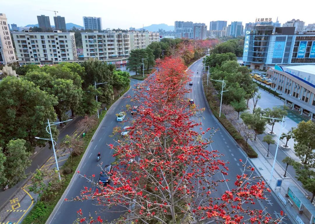 处处呈现出木棉花开迎新春的蓬勃景象。