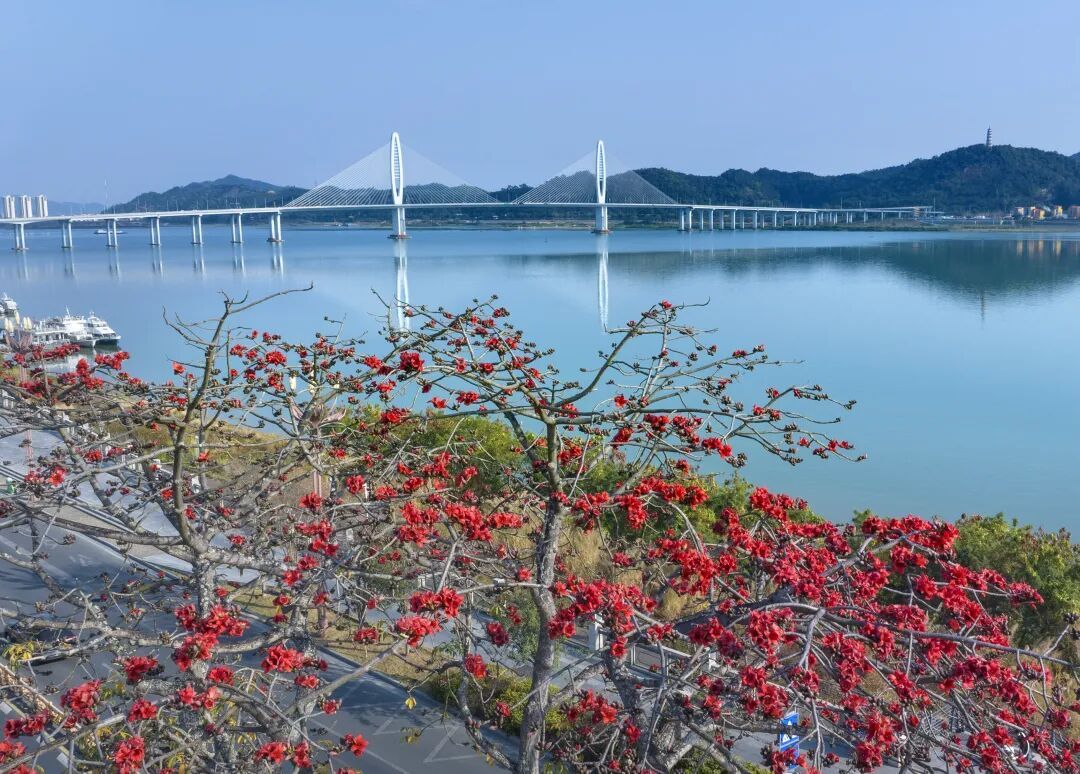 △一江碧水,花红锦绣秀中的阅江大桥。肇庆市融媒体中心记者 朱梦丹 摄