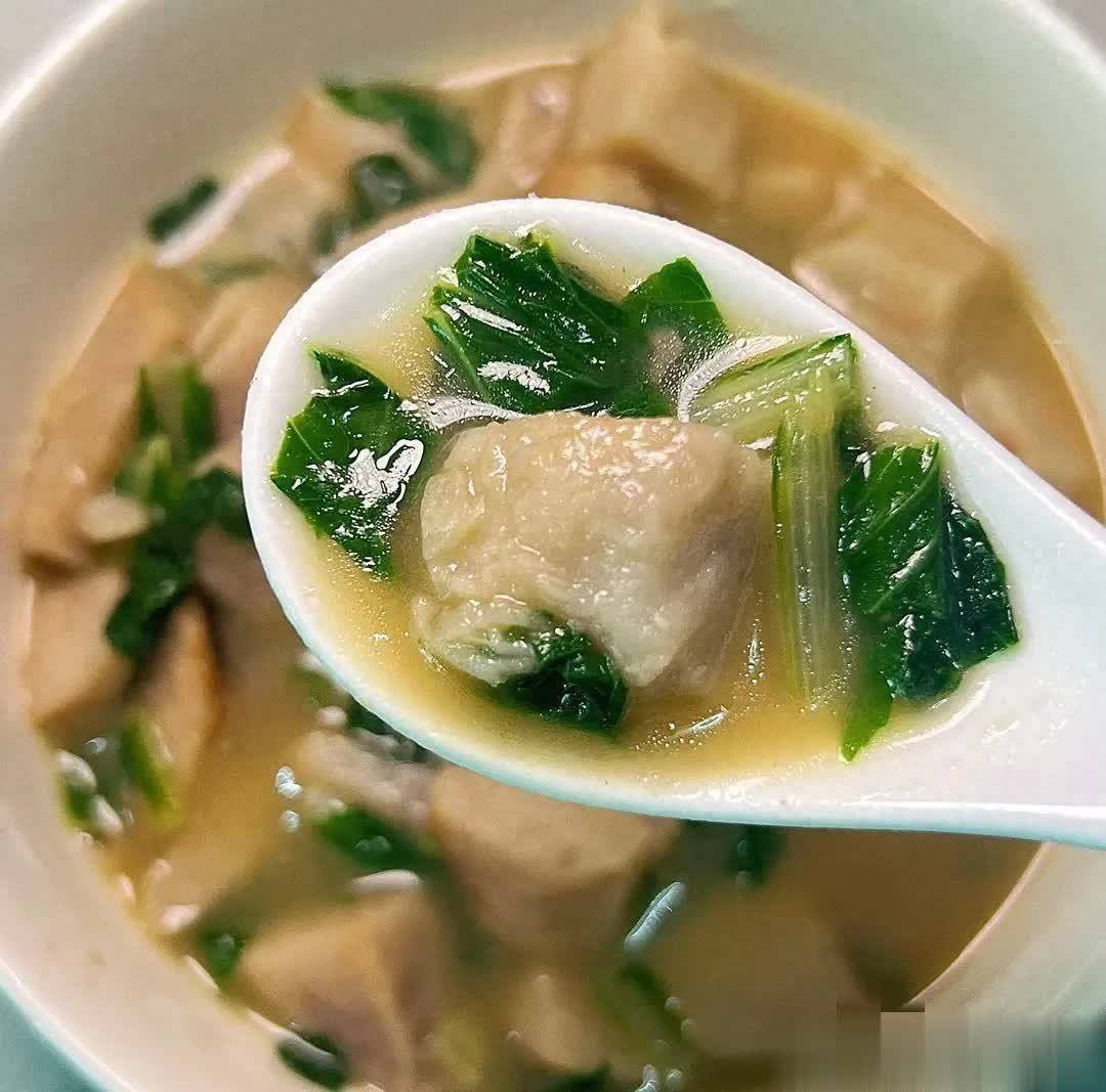 3. 下青菜碎煮至断生,加少许盐、白胡椒粉调味即可,喜欢浓稠的可以多熬1分钟。